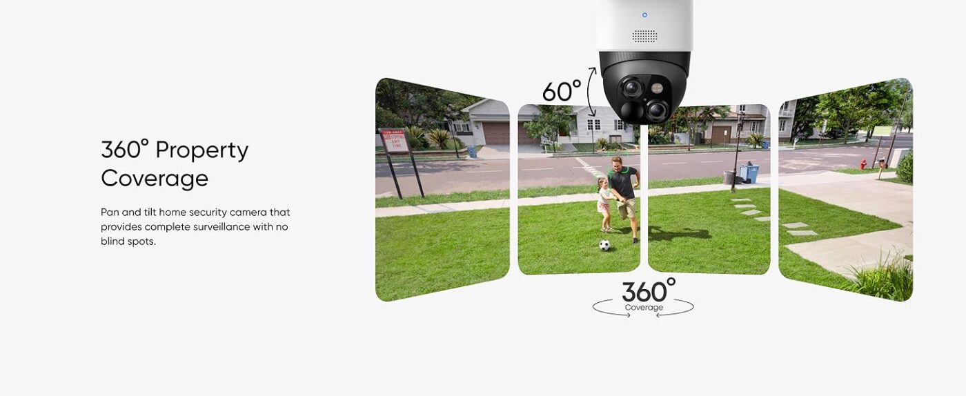 Complete pan rotation with no blind spots. A single camera covers your entire property.