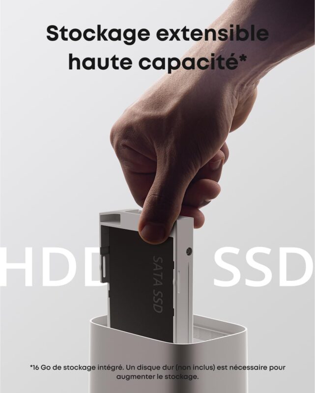 - 16 To de stockage – Extensible via HDD ou SSD SATA