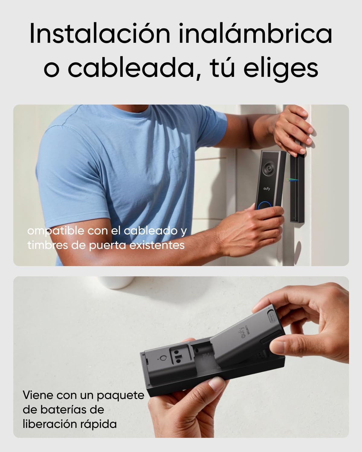 Profitez d’une installation flexible grâce aux deux options d’alimentation de la sonnette eufy C31.