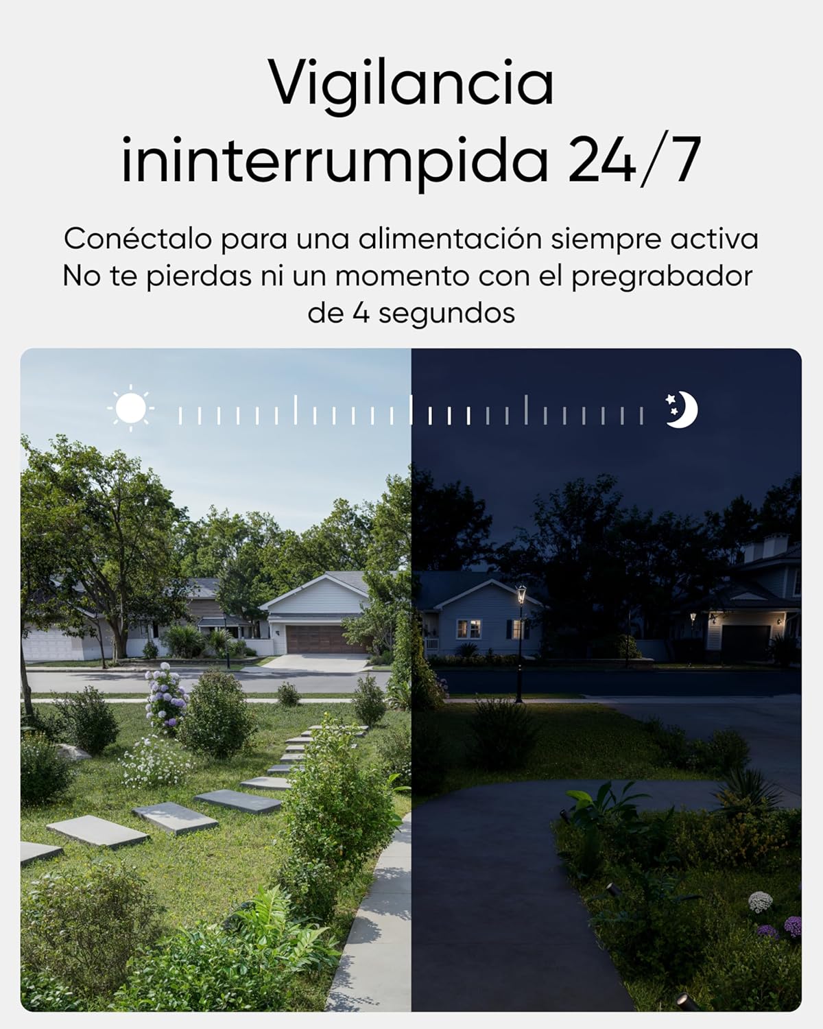 L’alimentation câblée vous offre un enregistrement continu 24h/24 et une fonctionnalité de pré-enregistrement de 5 secondes pour les détections de mouvements.