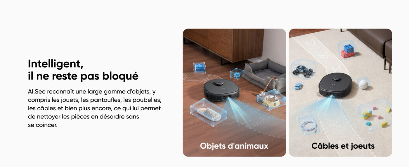 - ✅ 100+ obstacles reconnus – Câbles, jouets, chaussures…
