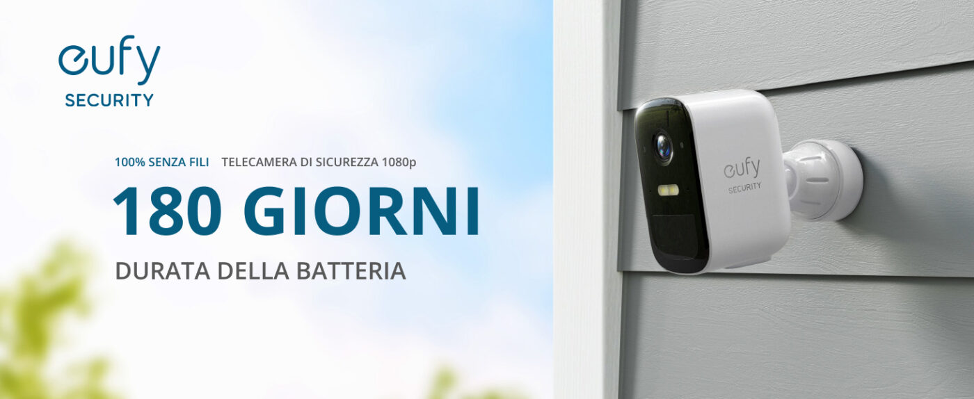 eufyCam 2C Pro funziona senza sforzo sia all’esterno che all’interno e non necessita nemmeno di cavo permanente: 180 giorni di autonomia dopo una sola ricarica.