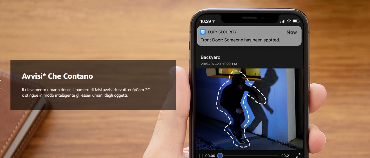 La telecamera distingue gli umani da uccelli, cani e foglie. Avvisi solo per ciò che conta davvero.