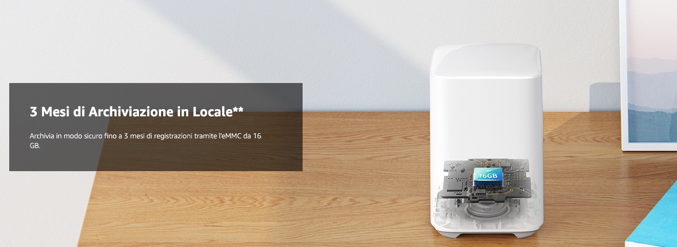 16 GB di memoria eMMC sulla HomeBase 2 conservano fino a 3 mesi di registrazioni in totale sicurezza.