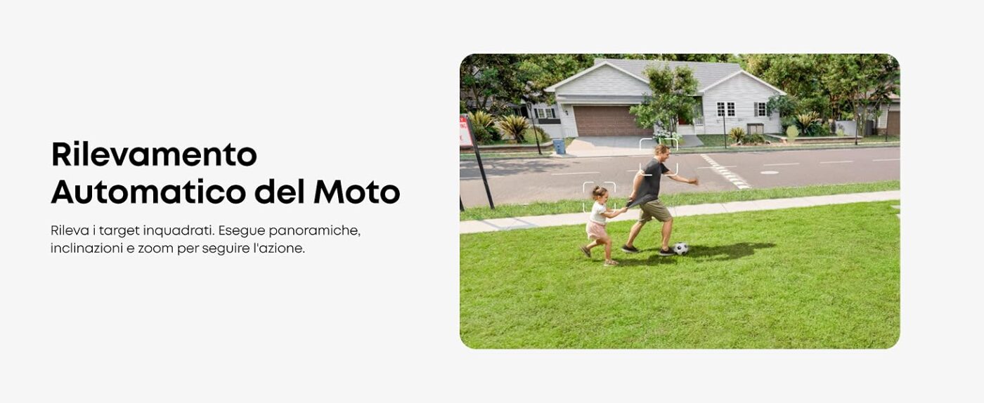 Rotazione panoramica completa senza angoli ciechi. Una singola telecamera copre l’intera proprietà.