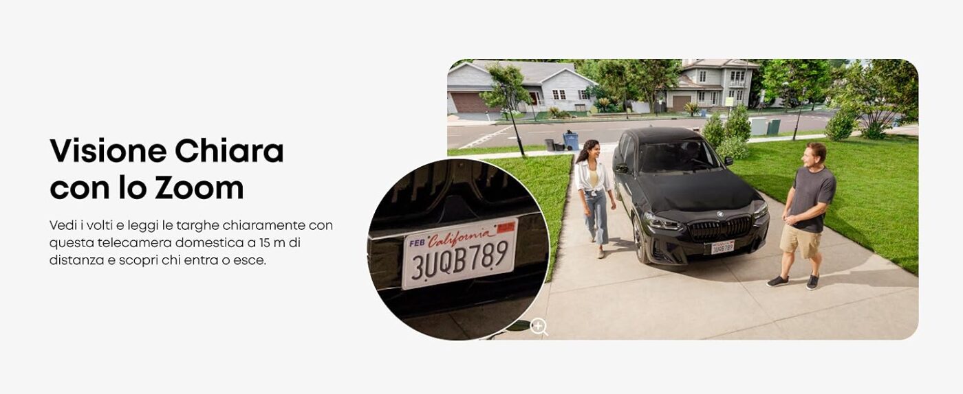 Goditi una risoluzione 3K ultra nitida e zoom 8× per identificare chiaramente qualsiasi attività intorno alla tua casa, giorno e notte.