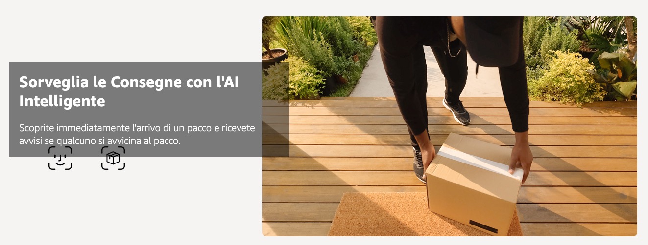 | Rilevamento IA | Persone • Pacchi |