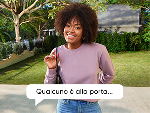 Ricevi notifiche in tempo reale quando qualcuno suona alla porta. Scegli tra 8 suonerie diverse e aggiungi una scheda microSD per archiviare fino a 128 GB di registrazioni direttamente nel campanello.