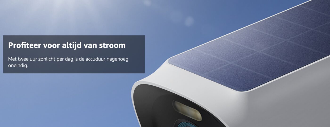 3× Solar-Camera’s 4K • 1× HomeBase 3 inbegrepen • 16 TB opslag • Slechts 2u licht/dag nodig